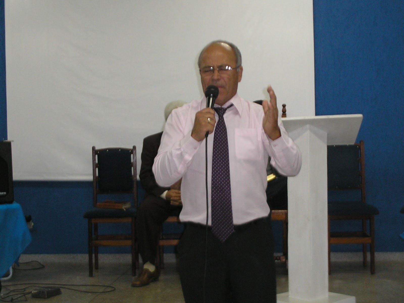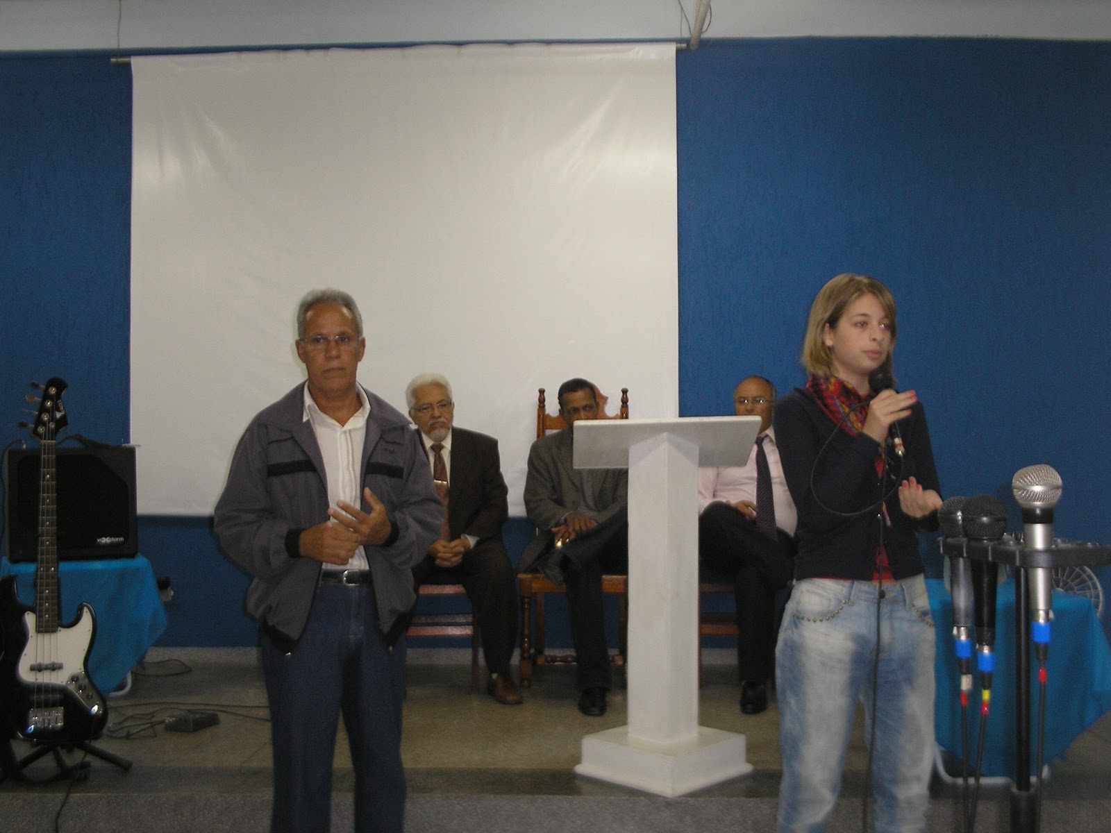 O irmão José Carlos apresenta os familiares que vieram de Mogi das Cruzes: O Presbítero Milton irmão da irmã Leia, que estava acompanhado da esposa Ana e das filhas Tabata e Paloma. Todos eles participaram do culto entoando louvores junto com a congregação.