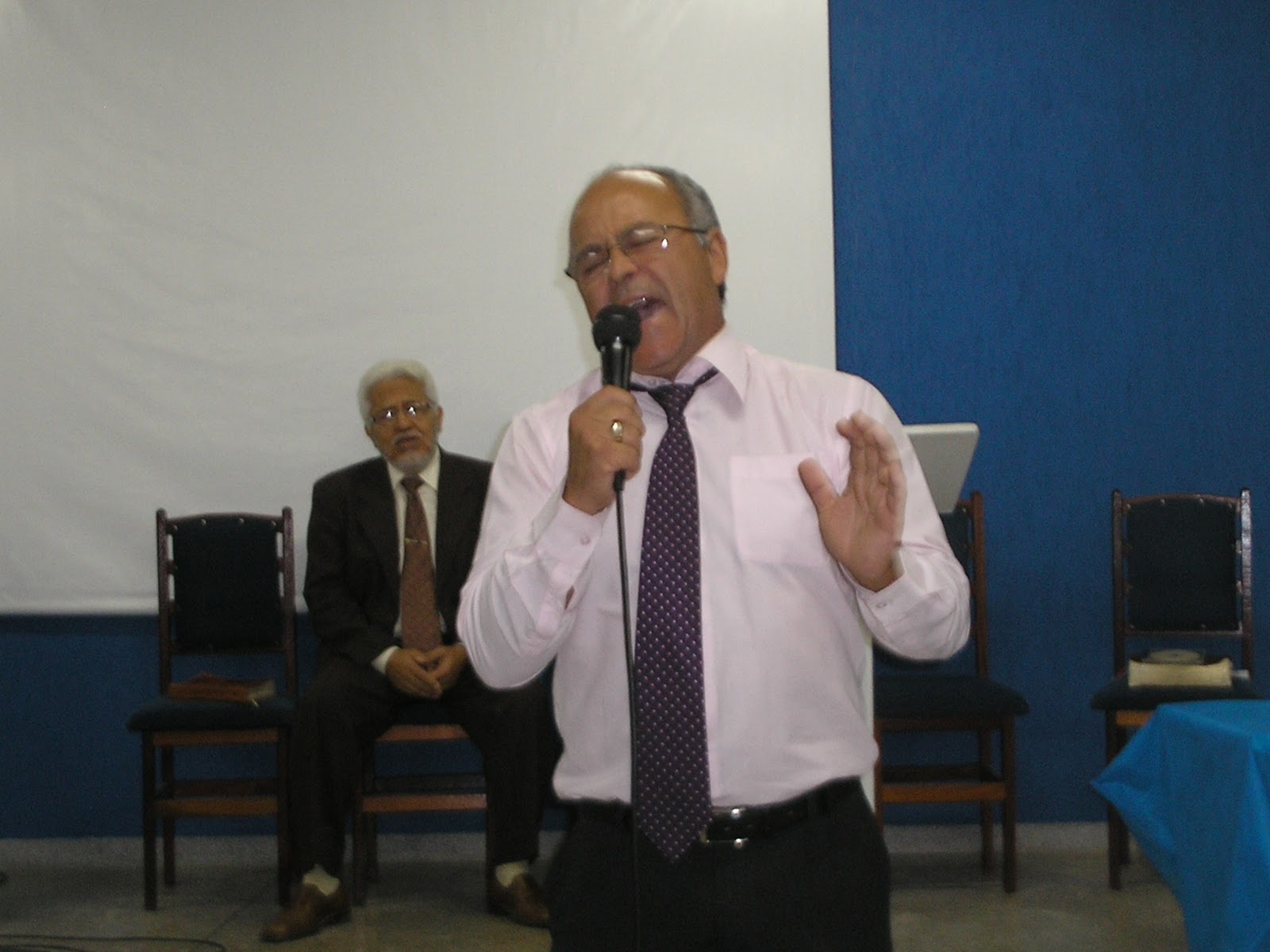 O irmão José Carlos chama o Presb. Milton para orar pelas ofertas: