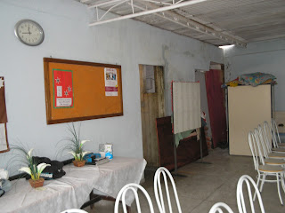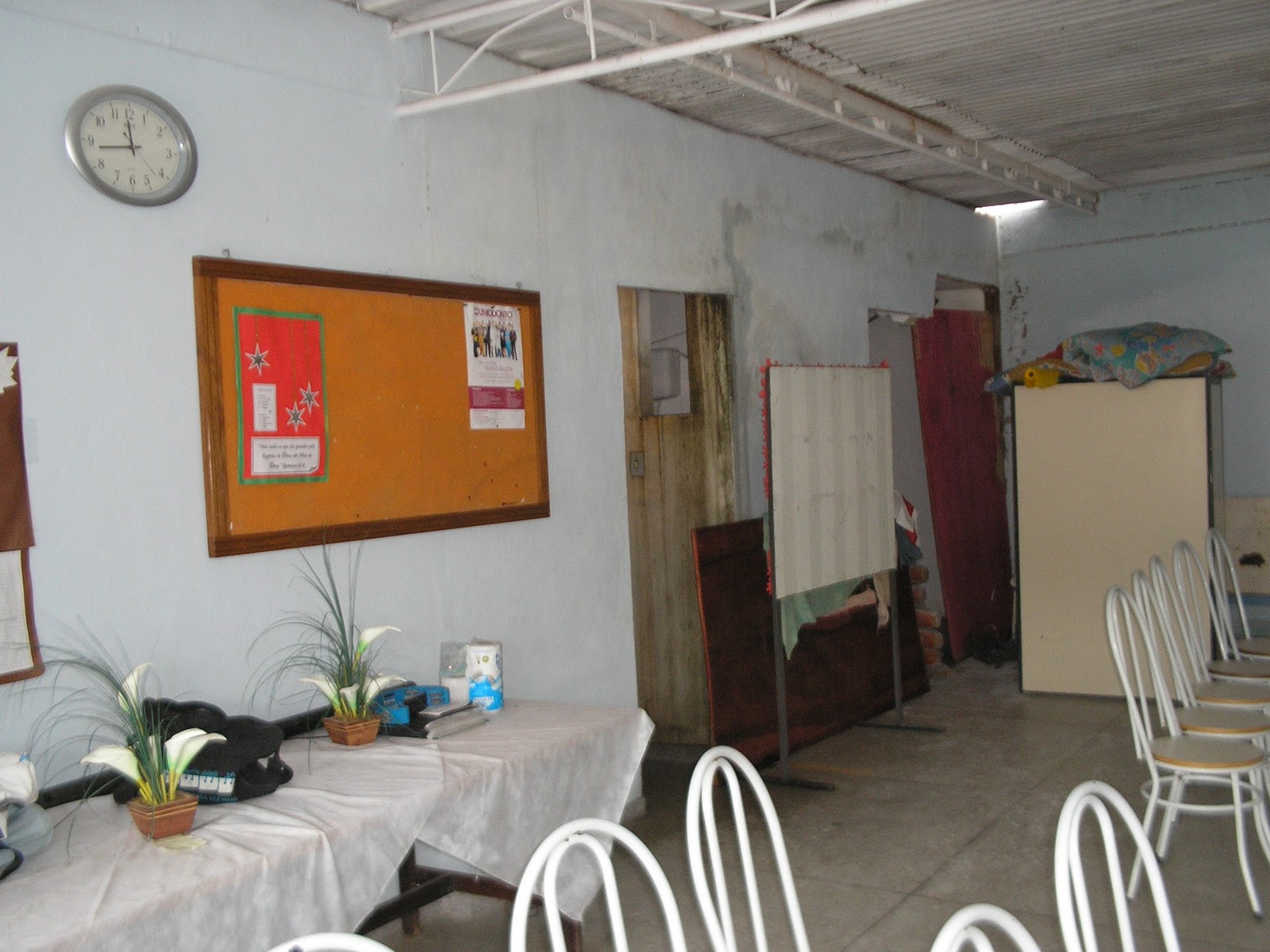 O nosso templo foi construído aproximadamente há quatro anos, bem rapidamente, logo que conseguimos adquirir um lote num terreno plano, que demandaria um custo menor na construção de um local para reunião. A intenção era sair do aluguel! Nós os brasileiros de classe menos favorecida financeiramente, temos sonhos em ter a casa própria, assim a idéia passa para o grupo de irmãos sempre que começa uma congregação reunindo-se em um imóvel alugado. Entretanto, a construção devido o modo apressado, e com material recuperado obtido por doações, foi feito o que se pôde. Mais agora começamos a reforma do templo com vistas a termos um local mais agradável, e com aspecto mais adequado para um templo de louvor ao nosso Deus. Abaixo algumas tomadas da reforma que estamos realizando. Em breve divulgaremos fotos do novo templo.